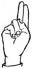 На ћирилици написано ЛАРА ТУБОЊИЋ састоји се из 11 слова [?]. Исписано ћириличном једноручном азбуком за глувонеме: